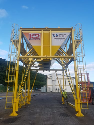 Construção/fornecimento e aluguel de funil (moega) metálico para descarga a granel]
